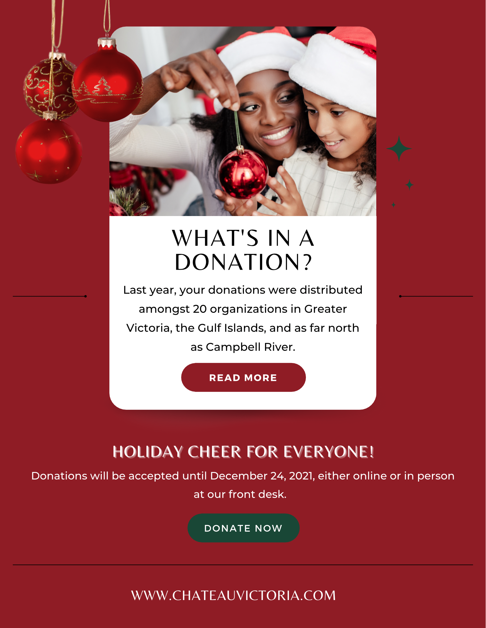 As Marketing Manager for Chateau Victoria Hotel & Suites, I oversaw brand communications across the hotel and its two on-site dining venues, Vista 18 and Clive’s Classic Lounge.